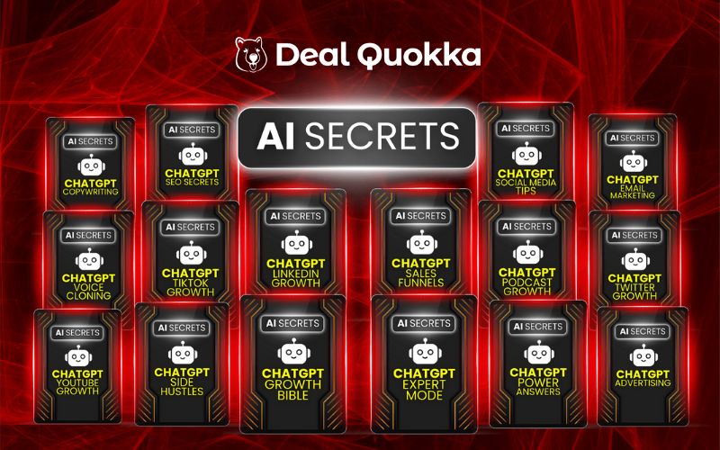 The Deal Quokka AI Secrets Vault is a digital resource suite consisting of 18 specialized reports and guides. This collection is designed to help professionals and entrepreneurs integrate artificial intelligence into business operations, marketing, and content creation. The vault focuses primarily on the practical application of ChatGPT across various digital disciplines.