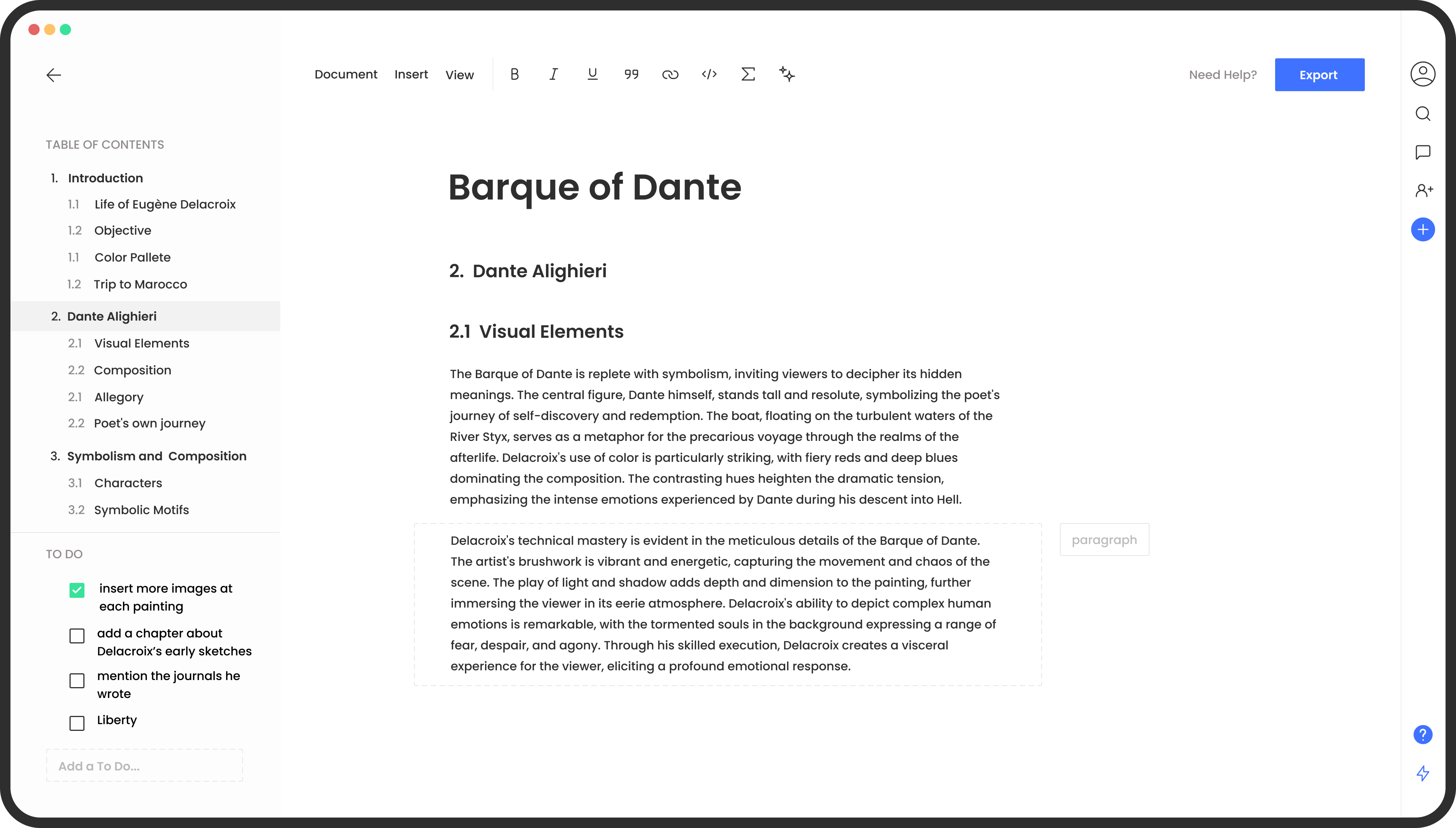 The ability to create ToDo lists within the app means you can break your massive writing project into manageable chunks. You can set tasks for specific sections, remind yourself to check a source, or note down a thought for a future chapter without ever leaving your document. This keeps you in the "zone" for longer periods. When you don't have to switch tabs to check your progress, your brain stays focused on the complex task of writing.