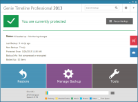 Genie Timeline Professional 2013 is a specialized backup utility designed for automated file protection across local, external, and network drives. The software streamlines the setup process through a three-step configuration wizard, after which it operates autonomously in the background. It utilizes IntelliCDP technology to monitor for modified data and updates backups in real time.