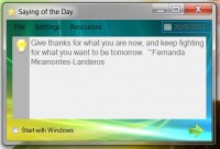 Saying of the Day is a program designed to display wise, cute, funny or famous sayings and quotes – good or bad – about life, love, sorry, goodbye, international and Chinese proverbs, etc. each time your computer starts!